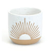 Planter decorated with an ingraved sunburst pattern, capturing the splendor and warmth of the celestial body. The light rays unfold elegantly around the pot, evoking a feeling of vitality and dynamism. This planter brings a sunny touch to your interior space, illuminating your plants with an aura of joy and brightness. With its inspiring design and vibrant pattern, it adds a dimension of natural beauty to your interior decor, creating a welcoming and warm ambiance.
