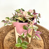 The Tradescantia 'Tricolor' is a trailing plant with delicate, bright foliage, blending shades of green, cream, and pink. Its small variegated leaves bring softness and freshness, while its flexible stems create a beautiful cascading effect, ideal for hanging baskets or on a shelf. Fast-growing, it quickly provides a full and lively look.