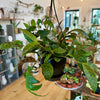L’Aeschynanthus ‘Black Pagoda’, aussi appelée plante rouge à lèvres marbrée, est une plante tropicale retombante au charme singulier. Elle se distingue par son feuillage vert profond marqué de motifs marbrés presque noirs sur le dessus, et d’un revers violacé spectaculaire. En période de floraison, elle produit des fleurs tubulaires orange à rouge qui émergent comme des petites touches lumineuses au cœur du feuillage sombre.