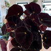 Le Begonia rex 'Conga' est une variété saisissante de bégonia Rex, réputée pour son feuillage large, texturé et intensément coloré. Ses feuilles ovales présentent un mélange riche de vert profond, de rouge bourgogne et parfois des reflets argentés, créant un effet presque métallique. Cette plante ornementale attire tous les regards et constitue une véritable pièce maîtresse dans une collection de plantes d’intérieur.