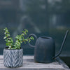 Cache-pot en béton avec motif de feuille fossile gravée. CNP-357