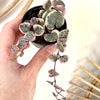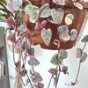 La Ceropegia woodii f. variegata est une plante retombante au charme délicat, reconnaissable par ses petites feuilles en forme de cœur, bordées de rose pâle et de blanc crème. Sa croissance en cascade et sa panachure en font un choix prisé pour les suspensions ou les étagères lumineuses.