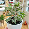 Le Dizygotheca elegantissima, aussi connu sous le nom Faux Aralia, se distingue par son feuillage finement dentelé, d’un vert foncé presque noir, apportant une touche sophistiquée et exotique à tout intérieur.