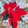 Euphorbia pulcherrima, plus connue sous le nom de poinsettia ou étoile de Noël, est célèbre pour ses bractées colorées qui entourent de petites fleurs centrales jaunes, souvent confondues avec les véritables fleurs de la plante. Disponible dans des tons rouges, roses, blancs et crème, elle est particulièrement populaire durant les fêtes de fin d'année.
