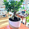 Le Ficus microcarpa bonsaï est une plante d'intérieur très appréciée pour son tronc épais et ses racines aériennes impressionnantes, qui lui donnent une apparence sculpturale. Ses petites feuilles ovales et brillantes forment une canapé dense et verte, idéale pour ajouter une touche de verdure élégante à votre intérieur.