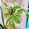 Plante gracieuse aux feuilles épaisses, panachées de blanc crème et parfois teintées de rose, la Hoya 'Krimson Queen' est une variété de plante à cire très décorative. Elle est prisée pour son feuillage éclatant et ses petites fleurs étoilées et parfumées lorsqu’elle fleurit.