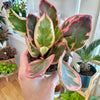 Avec son feuillage épais aux teintes de vert, crème et rose tendre, la Peperomia 'Ginny' est une plante aussi charmante que facile à vivre. Chaque feuille est bordée d’un liseré rosé qui lui donne un air délicatement peint à la main. Compacte et lumineuse, elle trouve facilement sa place dans tous les décors, apportant une touche de fraîcheur et de féminité.