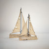 Design minimaliste. Se tient sur une plate-forme en bois. Coquillages sur le cordon de la voile.